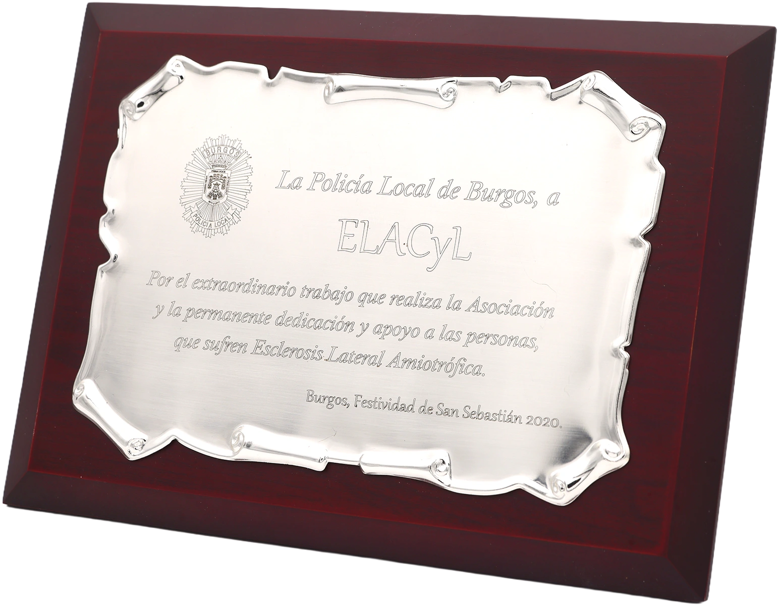 Distinción por nuestra dedicación constante al apoyo de personas con ELA, otorgada durante la festividad de San Sebastián.